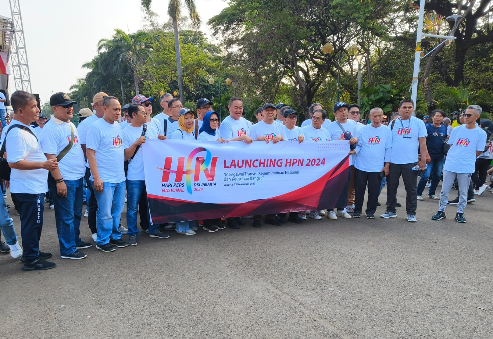 Jalan santai bersama Menteri Teten Masduki itu dilakukan sambil membawa spanduk yang bertuliskan “Mengawal Transisi Kepemimpinan Nasional dan Keutuhan Bangsa. Turut hadir dalam jalan santai ini, pengurus PWI dan pimpinan redaksi media massa, di antaranya Sekjen Sayid Iskandarsyah; Wasekjen Raja Pane dan Ketua Panpel HPN 2024 Marthen Slamet Susanto.