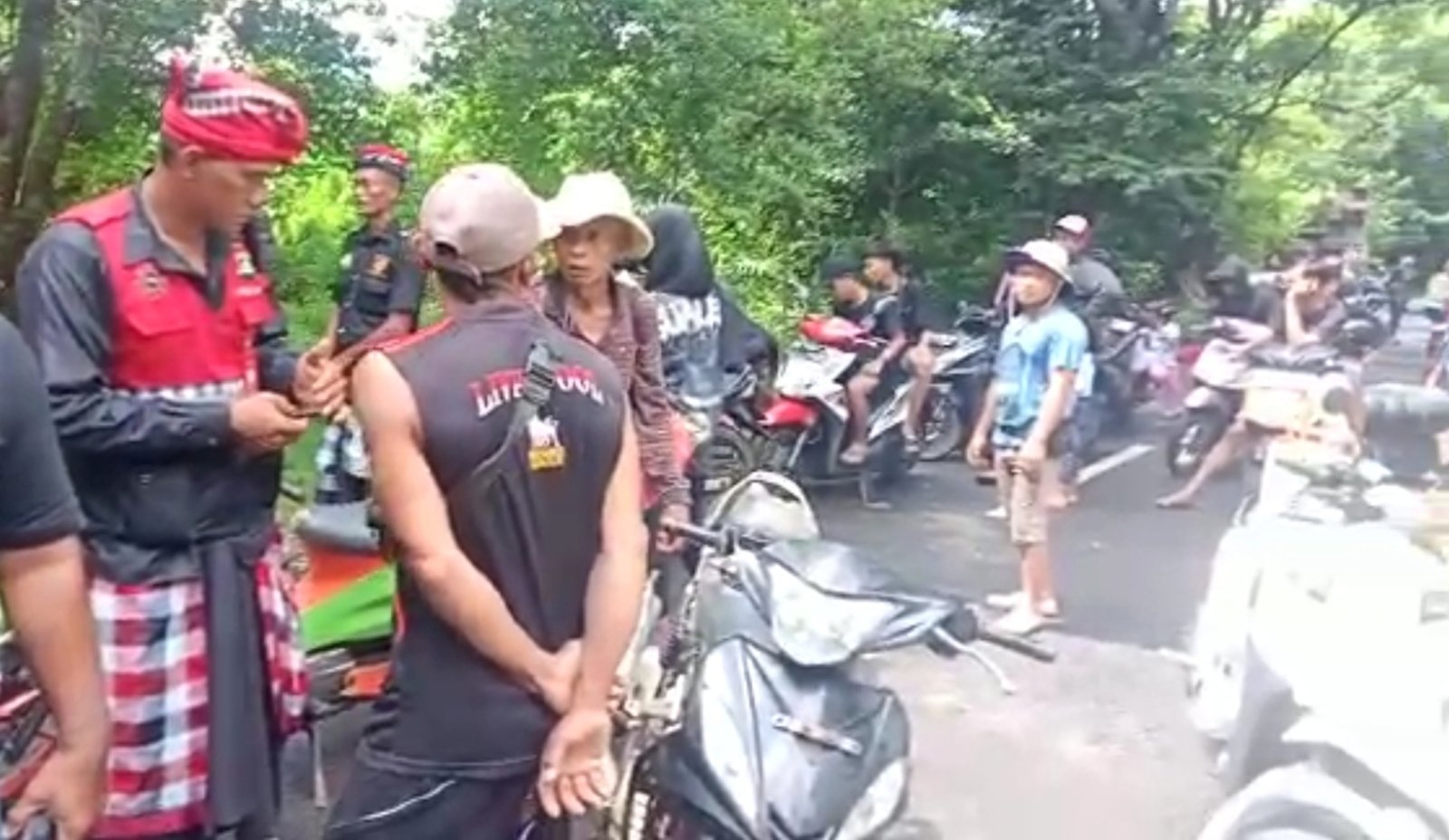 Kerumunan warga Desa Sumberkelampok yang mengabaikan imbauan pacalang desa adat dan merangsek masuk menuju Pantai Segara Rupek di kawasan Taman Nasional Bali Barat (TNBB) saat Hari Suci Nyepi, Rabu (22/3/2023). (Tangkapan layar video/WAG)