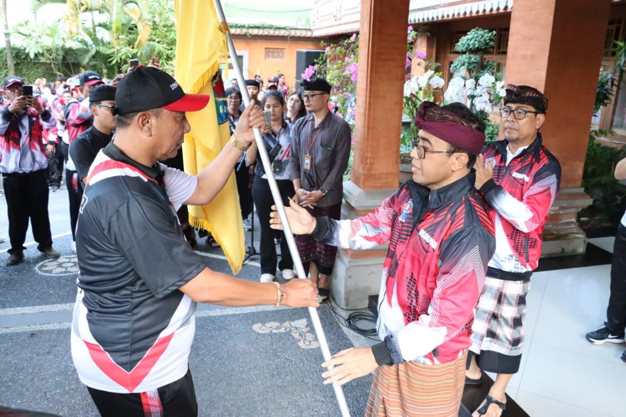 Dalam kesempatan tersebut tampak Walikota Jaya Negara membakar semangat para Atlet Denpasar yang siap mengikuti pertandingan pada Porjar Bali yang berlangsung dari tanggal 3-8 Juni 2024.