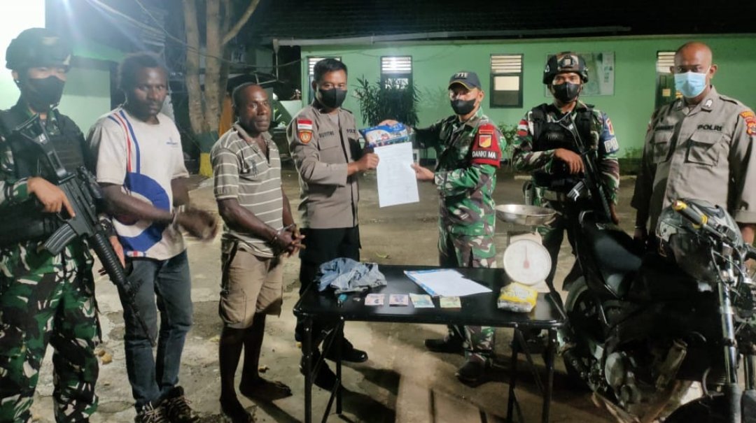 “Setelah dilakukan penyisiran oleh anggota Satgas Yonif 711/RKS, ditemukan barang bukti tidak jauh dari pelaku ditangkap. Keduanya mengaku barang haram tersebut diberikan oleh keluarga mereka yang bertempat tinggal di Negara PNG,” jelas Letkol Inf Mutakbir.