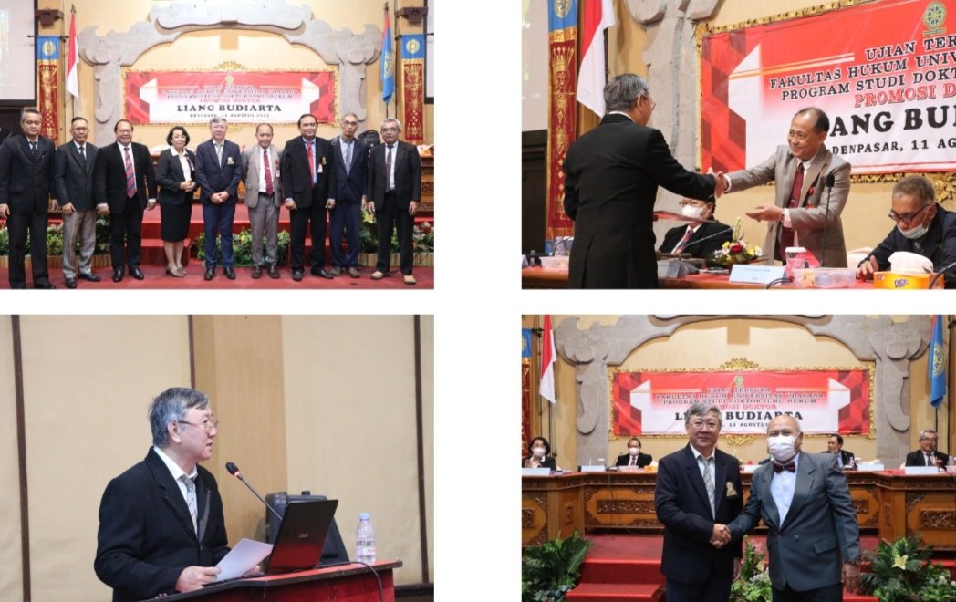 Liang Budiarta ini sendiri berprofesi sebagai Notaris di wilayah Kabupaten Badung. Ujian dipimpin oleh Dekan FH Unud dengan Tim Promotor Prof. Dr. Ida Bagus Wyasa Putra, SH.,M.Hum, Dr. Desak Putu Dewi Kasih, SH.,M.Hum, Dr. Putu Tuni Cakabawa Landra, SH.,M.Hum dan 4 dosen penguji lainnya.
