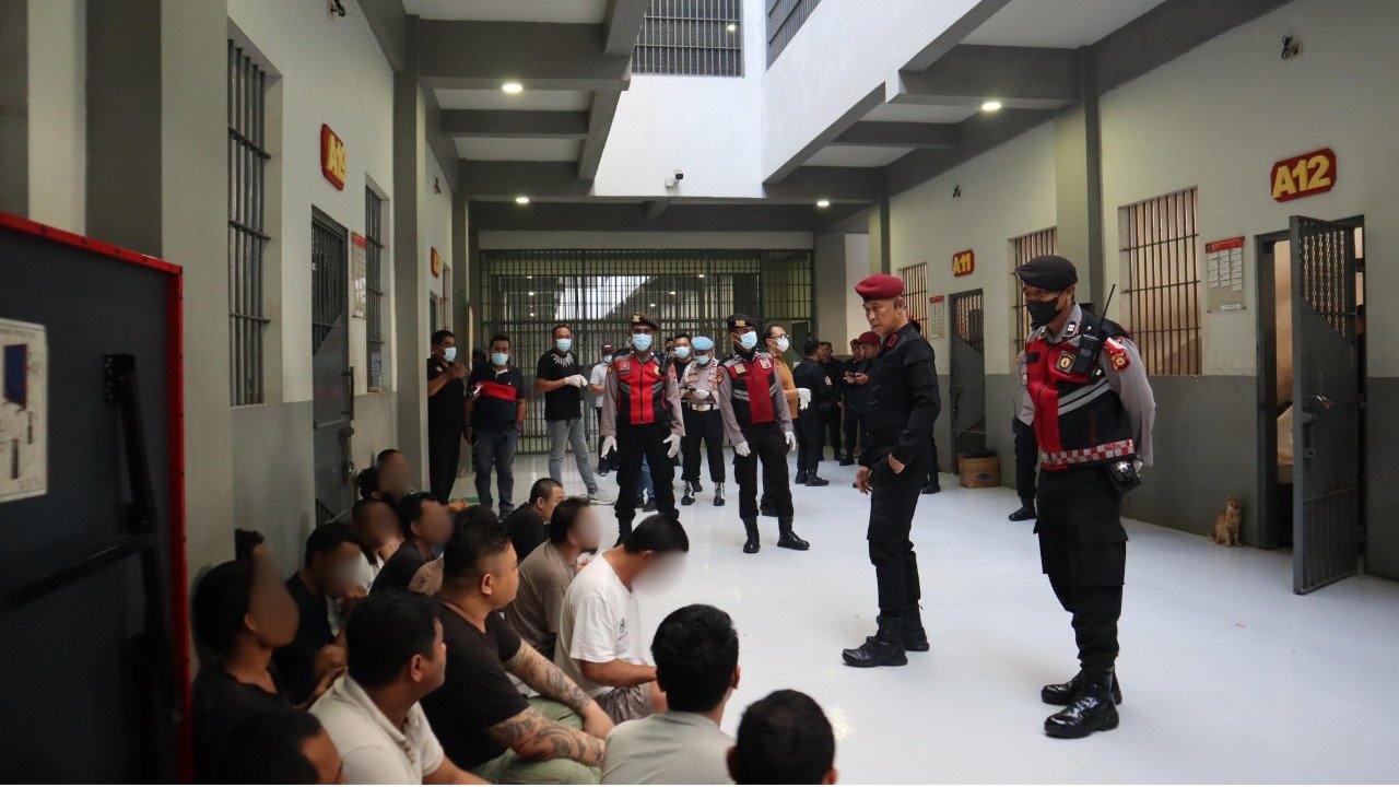 Ket foto: Lapas Kerobokan gelar razia gabungan lakukan penggeledahan pada kamar hunian sekaligus tes urine terhadap Warga Binaan Pemasyarakatan (WBP). (Sumber: barometerbali)