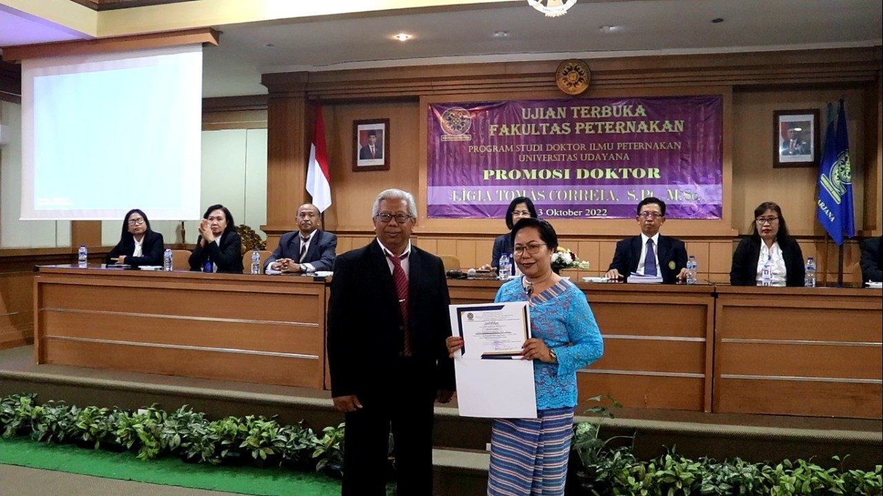 Jimbaran | barometerbali – Fakultas Peternakan Universitas Udayana (Fapet Unud) kembali melahirkan seorang Doktor di bidang Ilmu Peternakan, Lígia Tomás Correia merupakan Wakil Rektor di Bagian Kemahasiswaan dan Koordinator Kebijakan dalam urusan Jender Universitas Nasional Timor Lorosa’e (UNTL), melalui ujian terbuka promosi doktor yang dipimpin Ketua Sidang, Koordinator Program Studi Doktor Ilmu Peternakan Fakultas Peternakan Universitas Udayana Prof. Dr. Ir. Ni Nyoman Suryani, M.Si di Kampus Unud, Bukit Jimbaran, Senin (3/10/2022).