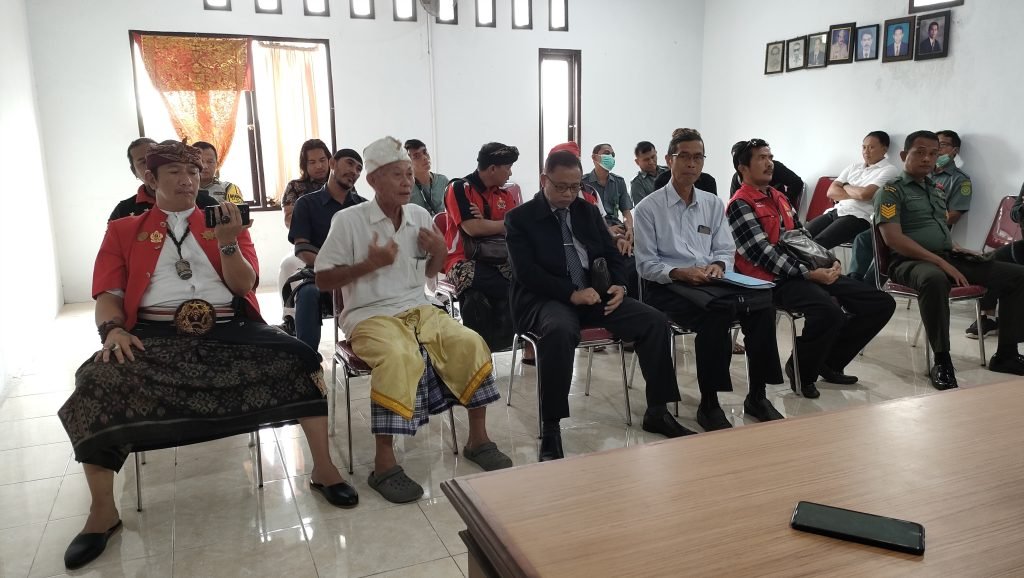 Termohon eksekusi Made Sutrisna (pakaian adat putih kuning) saat pertemuan di Kantor Perbekel Dauh Peken, Tabanan (BB/dd)