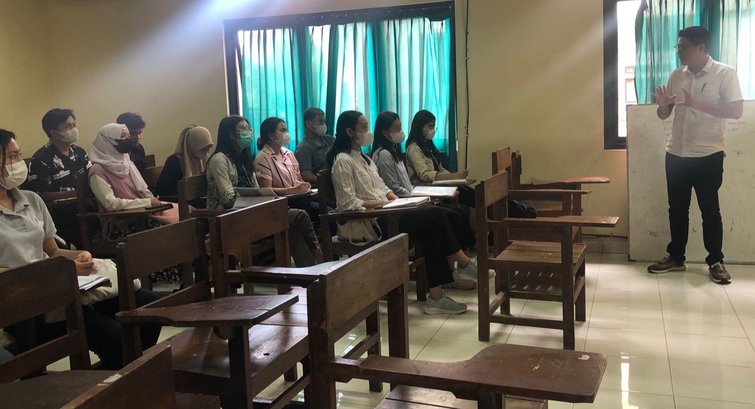 Ket foto: Manajer Daya Tarik Wisata Jatiluwih, Tabanan I Nengah Sutirtayasa, SE saat memberi kuliah selaku praktisi mengajar pada Mata Kuliah Manajemen Agrowisata, di Kampus Unud, Sudirman Denpasar, Jumat (30/9/2022). (ist/unud)