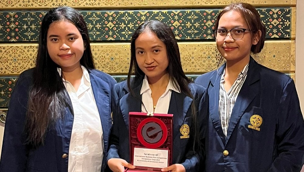 Ni Made Erryanjani Eramahardika (FEB Manajemen 2020), Luh Putu Widya Amritha (FK PSSK 2020), dan Made Tarina Maha Lini (FEB Manajemen 2021) sukses meraih First Winner International Business Plan Competition 2023, Darussalam Gontor Female Campus Entrepreneur Days 2023 Ponorogo Jawa Timur di bawah bimbingan Dosen Bayu Rahanatha (FEB Manajemen). (BB/501)