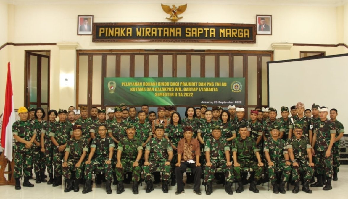 Jakarta | barometerbali – Umat Hindu dari wilayah Garnisun Tetap (Gartap) I Jakarta mendapatkan pelayanan rohani yang mana kegiatan ini dikoordinir langsung oleh Sub-Dinas Pembinaan Rohani Hindu-Budha Disbintal Angkatan Darat, di Aula Madisbintal, Jalan Matraman Jakarta Timur, Jumat (23/9/2022)