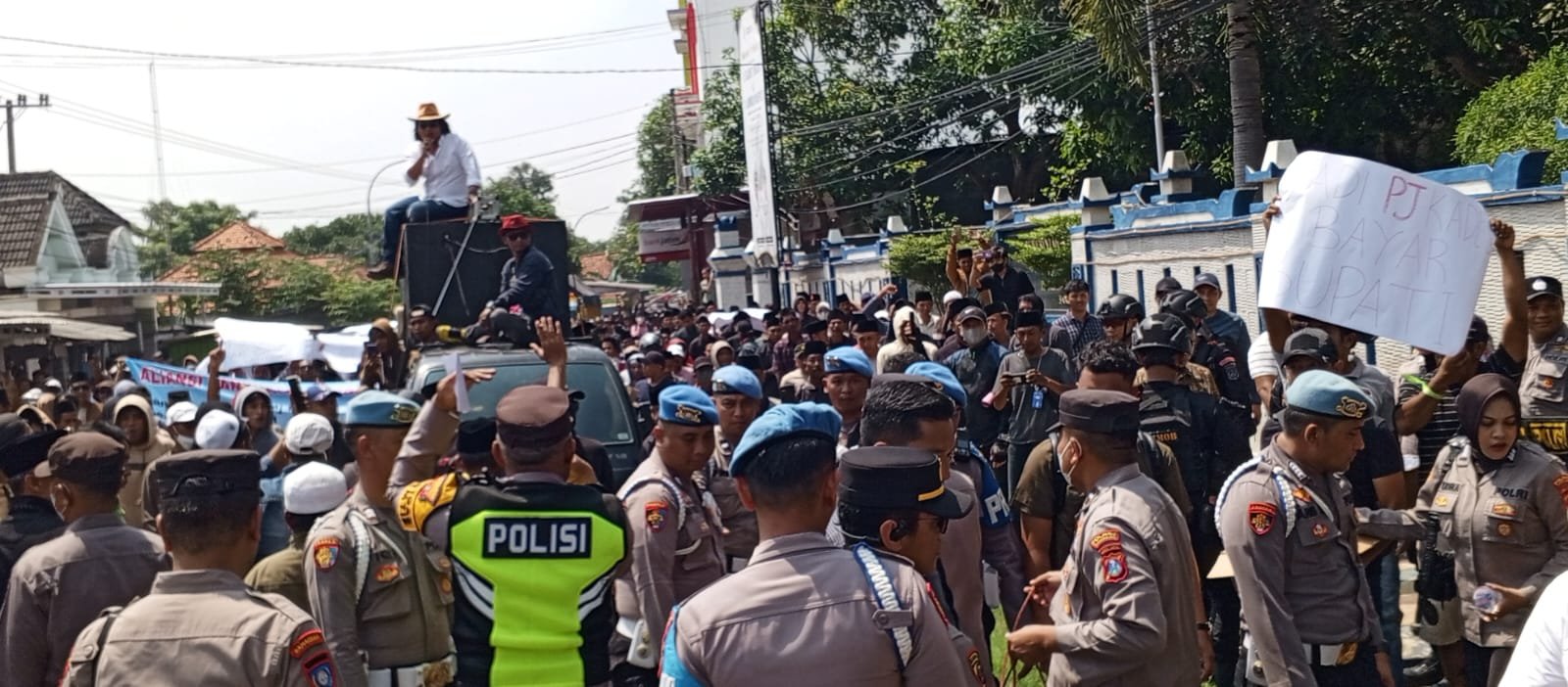 Dengan aksi demo tersebut ribuan masyarakat padati Kantor Kecamatan Banyuates, dengan orasi ini masyarakat menuntut untuk Pilkades tahun 2025 harus digelar.
