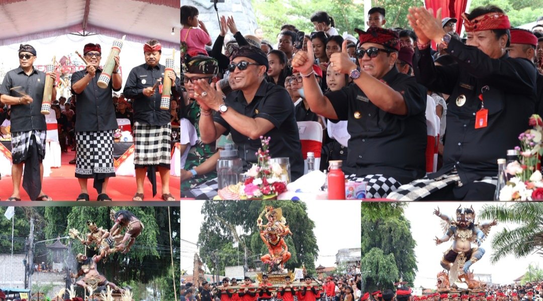 Kolase foto: Bupati Tabanan, Dr. I Komang Gede Sanjaya, S.E.,M.M. didampingi oleh Wakil Bupati Tabanan, Made Dirga, membuka Festival Ogoh-ogoh Singasana II tahun 2025, di Taman Bung Karno, Tabanan Sabtu, (15/3/2025). (barometerbali/ptbn/rah)