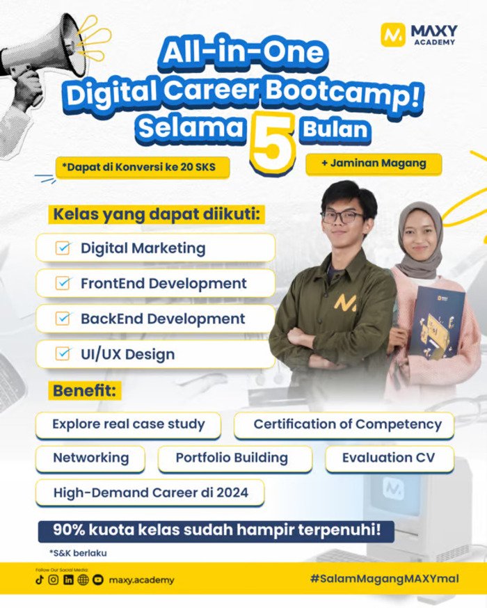 Untuk informasi lebih lanjut dan pendaftaran, kunjungi situs resmi maxy.academy.