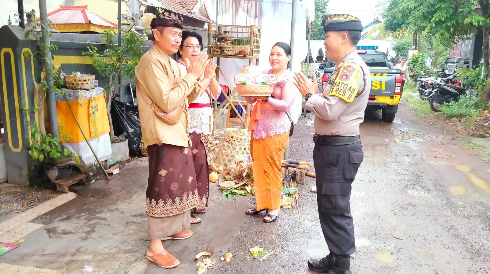 Foto: Kasat Samapta Polres Buleleng “mebraya” menemui masyarakat yang bernama Komang Kartika di Kelurahan Penarukan, Buleleng, Rabu (28/12/2022). (res/bllg)