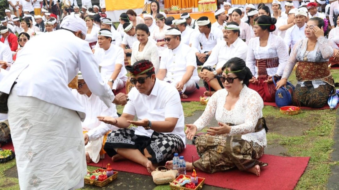 Persembahyangan yang dihadiri oleh berbagai pejabat penting, bertujuan untuk mengungkapkan rasa syukur kepada Ida Sang Hyang Widhi Wasa atas penetapan pasangan calon kepala daerah dan wakil kepala daerah yang terpilih dalam Pilkada serentak 2024 lalu.