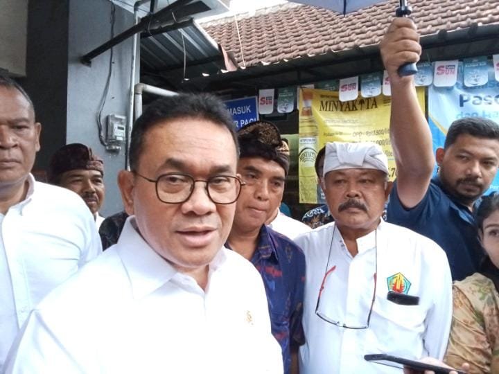 Barometer Bali | Denpasar – Menteri perdagangan Republik Indonesia, Budi Santoso melakukan peninjauan harga dan pasokan barang kebutuhan pokok di Pasar Nyanggelan desa adat Panjer, Denpasar pada, selasa (9/9/2025) pagi.