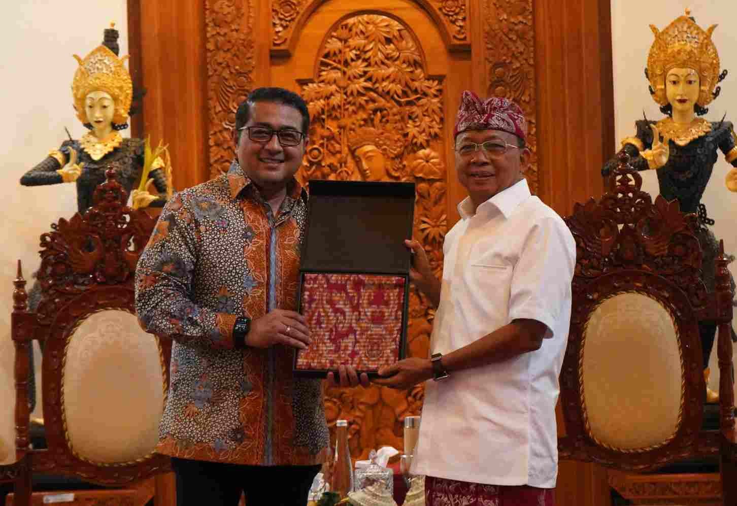 Foto: Menteri Ekonomi Kreatif Teuku Riefky Harsya (kiri) saat bertemu Gubernur Bali Wayan Koster di Jayasabha, Denpasar, Jumat (13/6). (Barometerbali/rah)