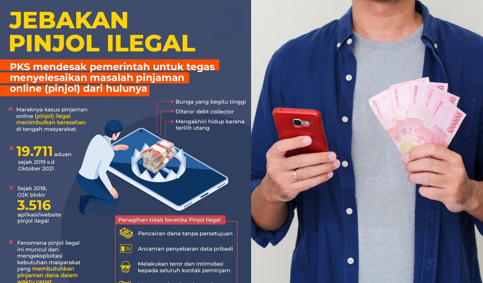 Grafis: Ilustrasi jebakan pinjol ilegal yang kerap dilaporkan merugikan masyarakat. (barometerbali/istimewa/pks/kemensos)