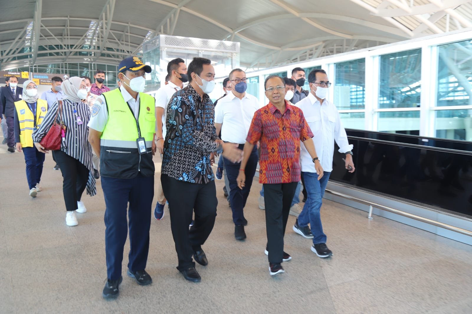 Menteri Perhubungan Republik Indonesia dalam agenda kunjungan kerjanya turut didampingi Gubernur Provinsi Bali dan General Manager PT Angkasa Pura I Bandara Internasional I Gusti Ngurah Rai – Bali meninjau langsung persiapan prasarana fasilitas dan proses yang akan dilalui para tamu negara jelang kegiatan G20.