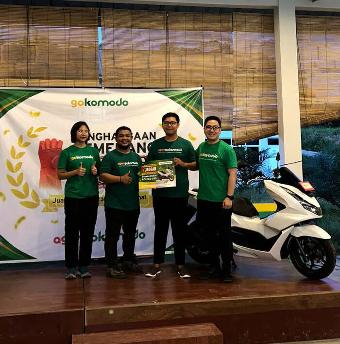 Wahyu sebagai penerima sepeda motor Honda PCX 160 merasa senang dan bersyukur bisa mendapatkan hadiah yang sangat disukainya. “saya akan menggunakan motor ini dengan baik serta akan dipergunakan untuk mendukung mobilitas ke para petani” tambahnya. Acara Awarding Ceremony Agen Gokomodo Nasional 2024 ditutup dengan makan malam bersama serta foto bersama dengan semua tim Agen Gokomodo.
