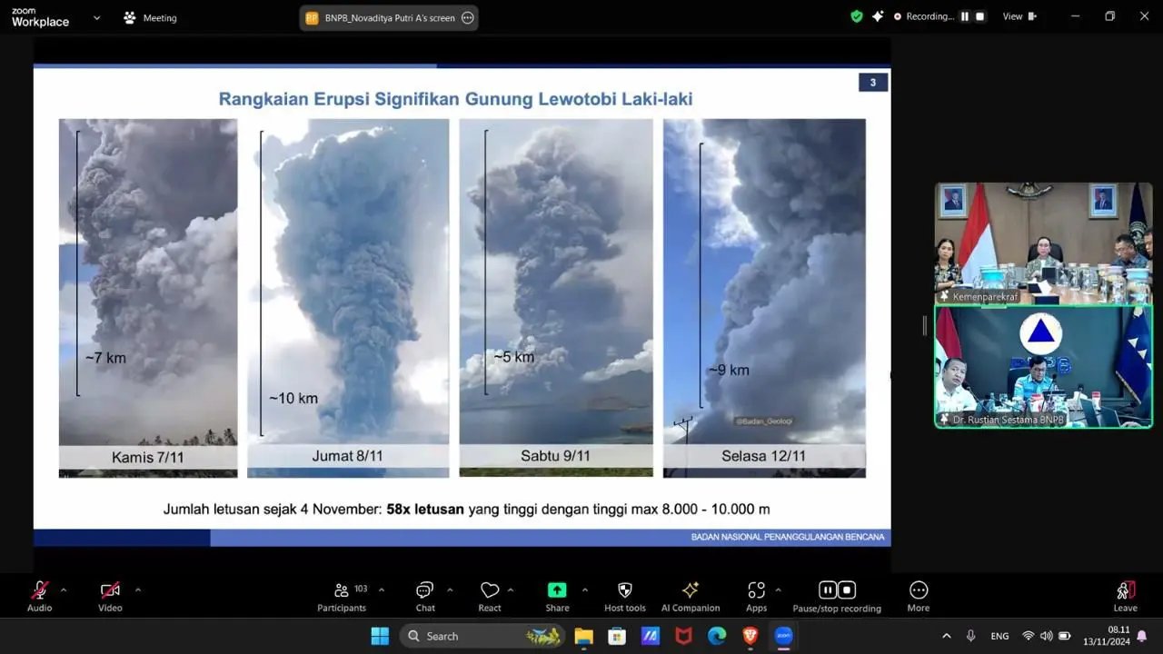 “Baik fasilitas seperti transportasi ke hotel terdekat, toilet bersih, serta konsumsi wisatawan menjadi perhatian kami. Sejak awal erupsi Lewotobi terjadi, koordinasi dan kolaborasi lintas stakeholder telah dilakukan,” kata Menpar Widiyanti Putri Wardhana dalam “Rapat Penanganan Dampak Bencana Gunung Lewotobi Laki-Laki di Sektor Pariwisata” yang berlangsung secara daring di Jakarta, Rabu (13/11/2024).