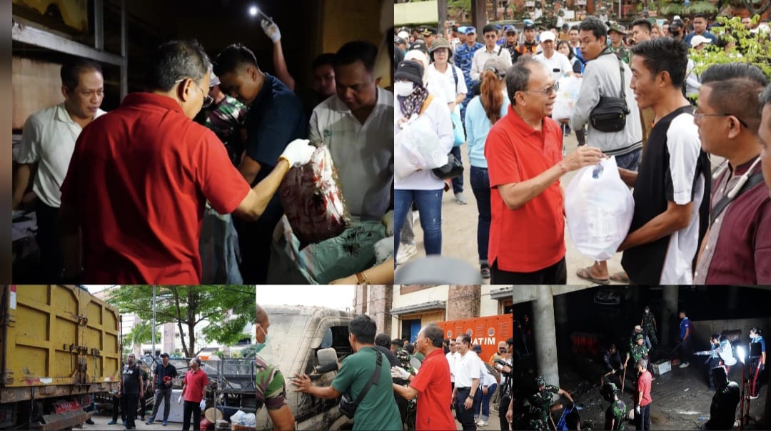 Diketahui, aksi solidaritas bersih sampah pasca banjir yang digelar di kawasan Pasar Badung dan Pasar Kumbasari melibatkan berbagai unsur antara lain TNI, Polri, Perangkat Daerah Pemerintah Provinsi Bali, Forkompimda Provinsi Bali, Komunitas, Akademisi, BUMN/Swasta serta unsur masyarakat lainnya. Selain pembersihan sampah banjir, Menteri LH dan Gubernur Bali serta unsur terkait juga menyerahkan bantuan sembako dan perlengkapan sehari-hari kepada korban banjir di Pasar Badung. (rah)