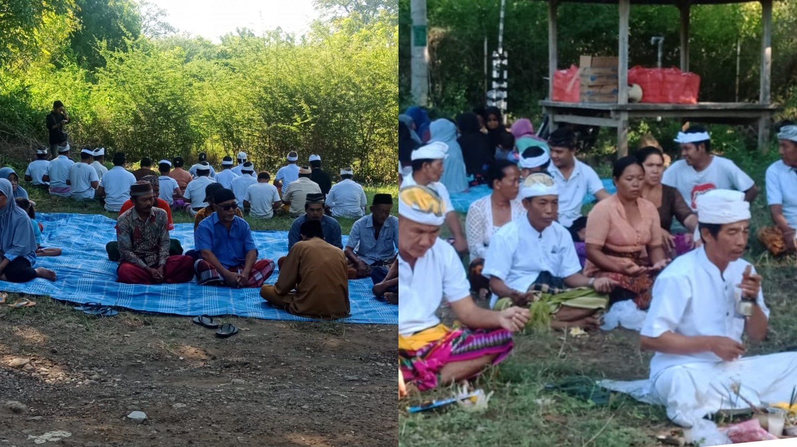 Yang menarik, warga Batu Ampar yanv kompak ini terdiri dari dua agama berbeda. Pemilik lahan yang beragama Hindu menggelar doa, atau bersembahyang menghadap ke selatan (arah gunung, red) sedangkan yang beragama Islam menghadap ke utara.