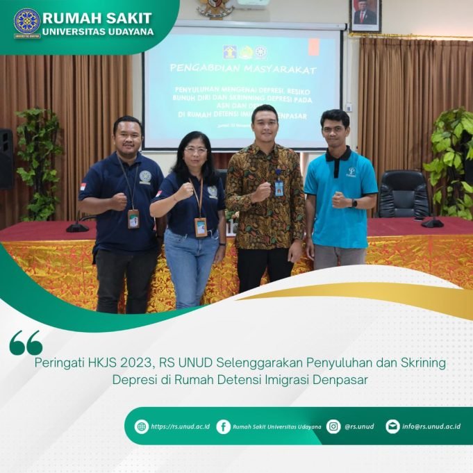 Denpasar | barometerbali – Dalam rangka memperingati Hari Kesehatan Jiwa Sedunia 2023 yang jatuh pada 10 Oktober, RS UNUD menggelar kegiatan penyuluhan dan skrining depresi di Rumah Detensi Imigrasi (Rudenim) Denpasar, Jumat (3/11/2023).