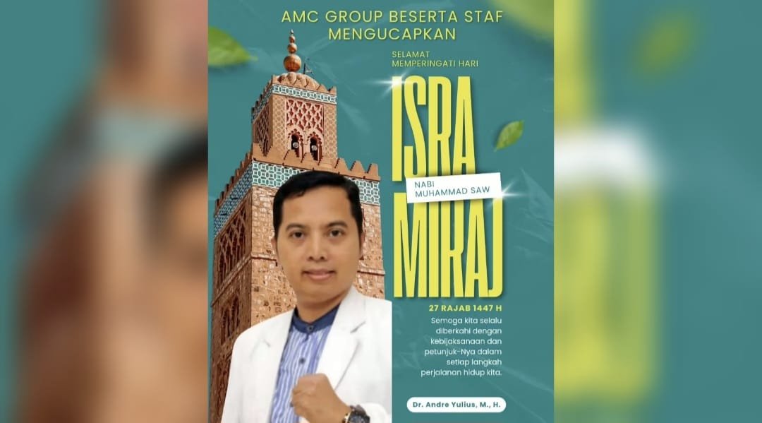 Dr. Andre Yulius menegaskan bahwa peristiwa monumental yang mencatat perjalanan Rasulullah SAW dari Masjidil Haram menuju Baitul Makdis, kemudian melanjutkan perjalanan menuju Sidratil Muntaha, menjadi sumber inspirasi yang tak ternilai bukan hanya bagi seluruh umat Islam, tetapi juga khususnya bagi setiap anggota keluarga besar AMC Group, untuk senantiasa berusaha meningkatkan kualitas ibadah pribadi, mengasah akhlak yang mulia sesuai dengan ajaran agama, serta memperdalam rasa kepedulian yang tulus dan ikhlas terhadap sesama makhluk.