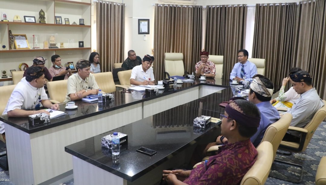 Foto: Tim KI Pusat diterima Wakil Rektor Bidang Perencanaan, Kerjasama dan Informasi selaku PPID PTN Unud bersama jajaran di Ruang Bahasa Gedung Rektorat Kampus Jimbaran, Kamis (1/12/2022). (rtr/unud)