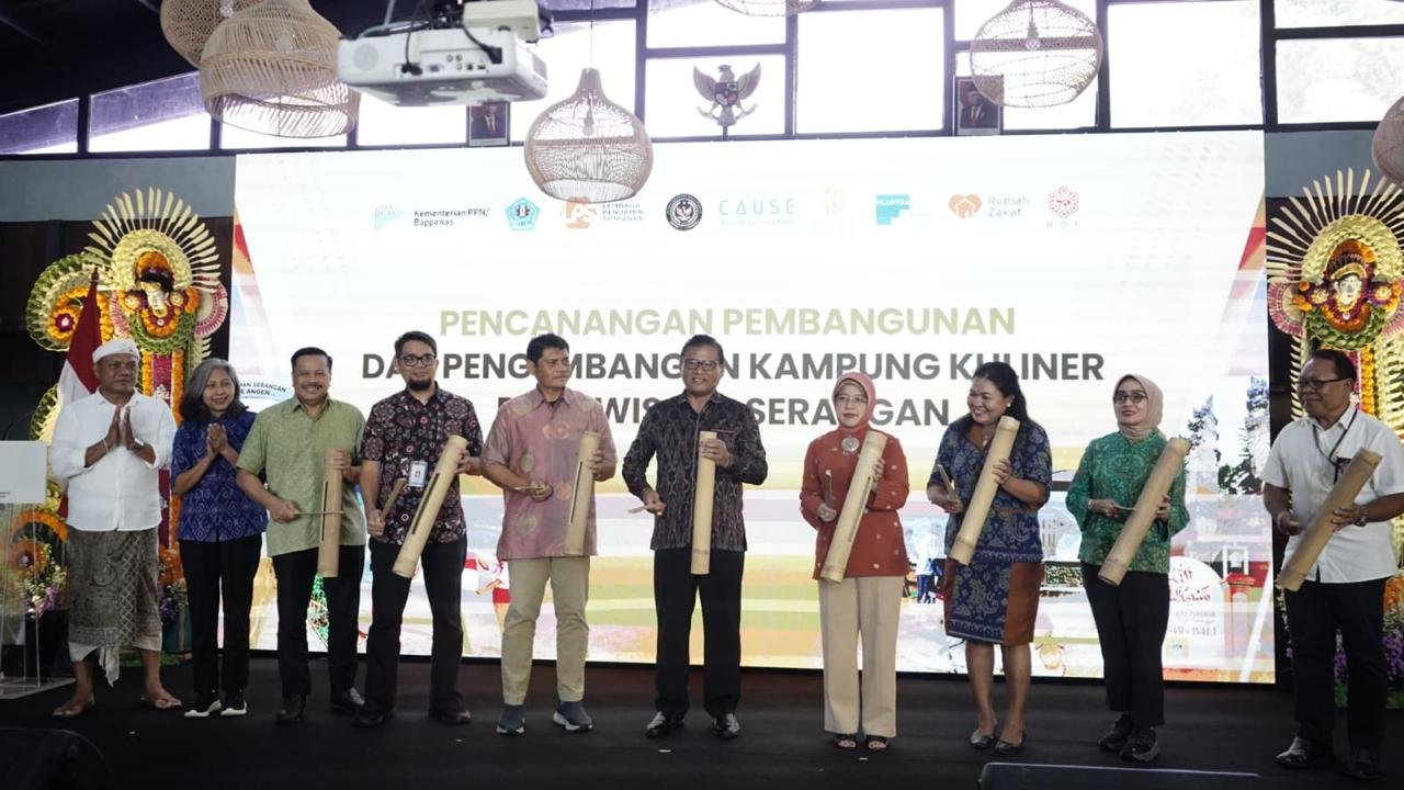 Dalam kesempatan tersebut dilaksanakan penandatanganan MoU oleh Deputi Bidang Ekonomi Kementrian Perencanaan Pembangunan Nasional/Bappenas RI, Amalia Adininggar Widyasanti serta seluruh pimpinan berbagai unsur Mitra Pembangunan Pengembangan Desa Serangan, dan dilaksanakan penyerahan buku master plan pembangunan oleh Sekda Kota Denpasar, IB. Alit Wiradana serta pencanangan pembangunan dan pengembangan Kampung Kuliner Desa Wisata Serangan dengan pemukulan kul-kul. (BB/212)+