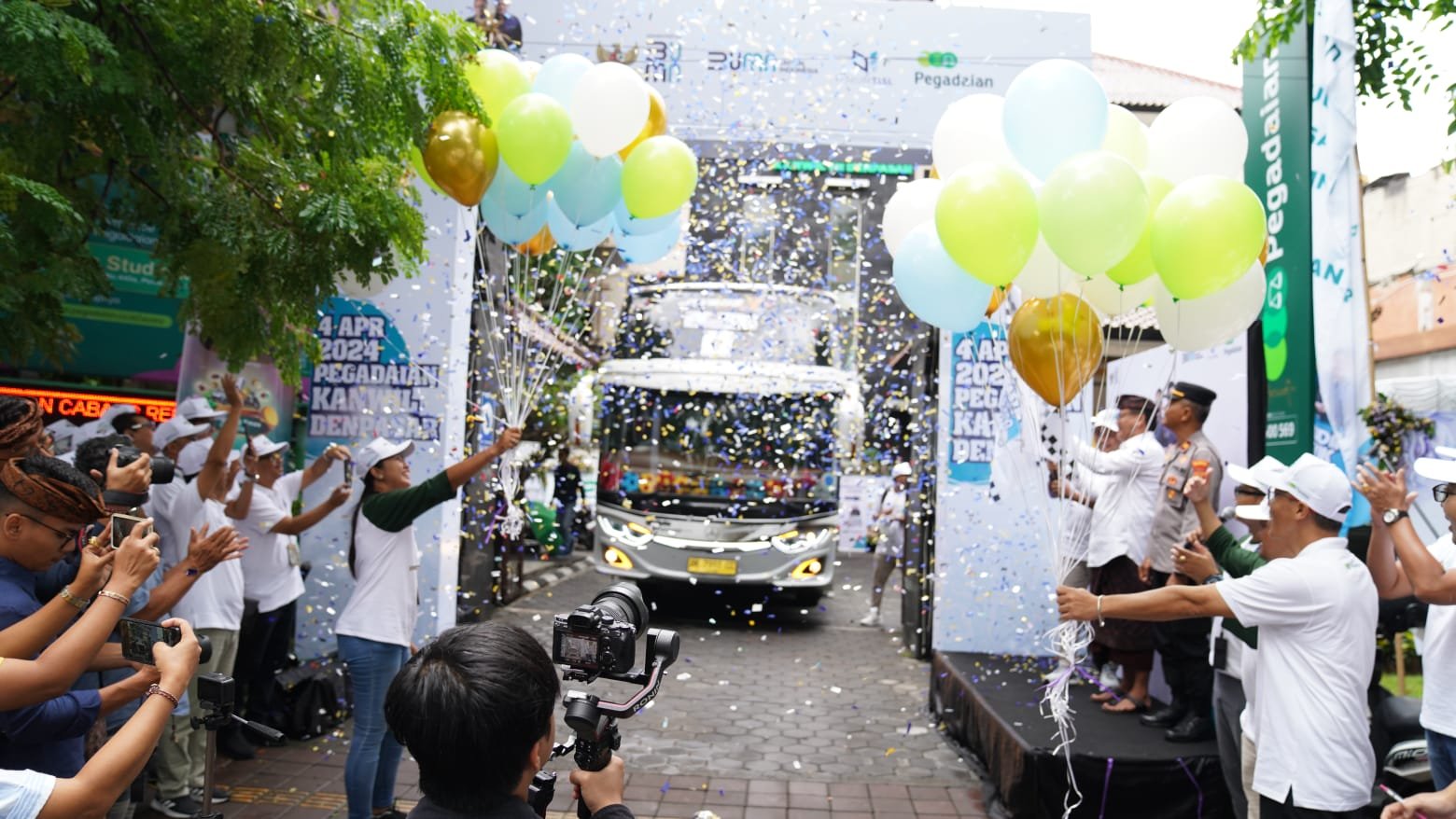 Foto: Pelepasan secara resmi Mudik Gratis PT Pegadaian Kanwil VII Denpasar berangkat dari Denpasar menuju tiga kota itu pada 4 April 2024 dari Pegadaian Kanwil VII di Jalan Raya Puputan Nomor 23 C Renon, Denpasar, Kamis (4/4/2024). (Sumber: BB/213)