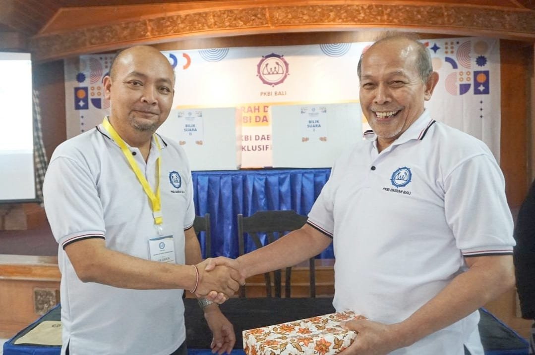 Foto: Ketua Pengurus PKBI Pusat; Dr. Ichsan Malik, M.Si (kanan) mengucapkan selamat kepada dr. Oka Negara (kiri) pasca-terpilih dan ditetapkan sebagai Ketua PKBI Bali periode 2023-2026 pada Musyawarah Daerah XI PKBI Daerah Bali di Denpasar, Minggu (10/12/2023). (Sumber: Humas PKBI Bali)