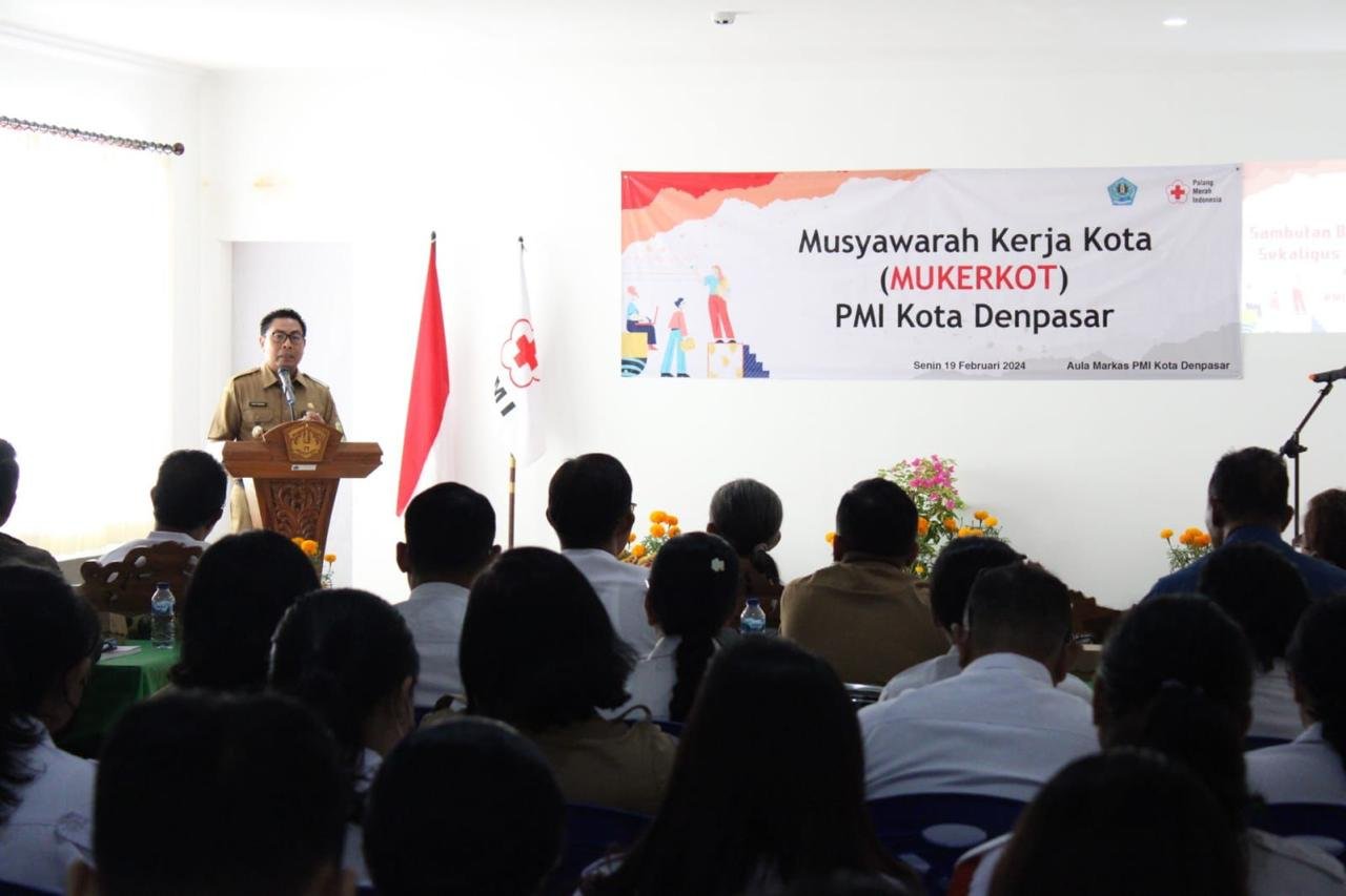 Foto: Musyawarah Kerja Kota (Mukerkot) PMI Kota Denpasar Ke-VIII Tahun 2024, yang digelar di Aula Markas PMI Kota Denpasar, Senin (19/2/24). (BB/hmsdps)