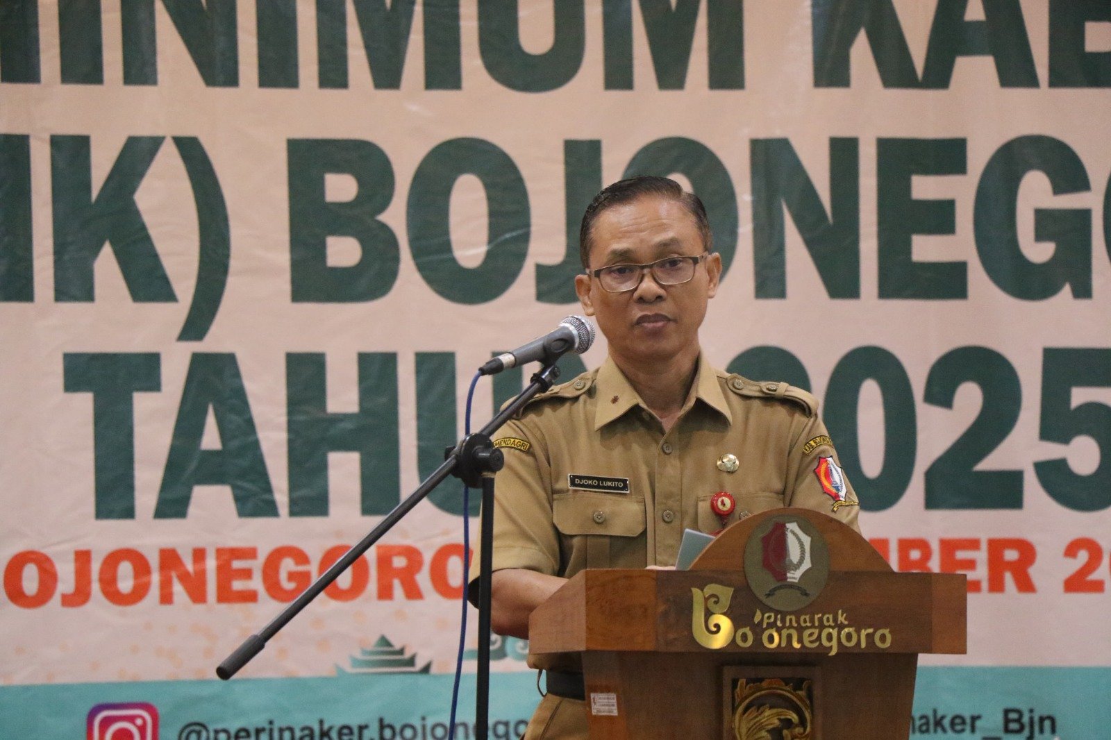 Pemerintah Kabupaten (Pemkab) Bojonegoro melalui Dinas Perindustrian dan Tenaga Kerja, mengumumkan sekaligus mensosialisasikan besaran UMK Kabupaten Bojonegoro Tahun 2025 yang telah ditetapkan oleh keputusan Pj Gubernur Jawa Timur bertempat di Aula Adelia Cafe.