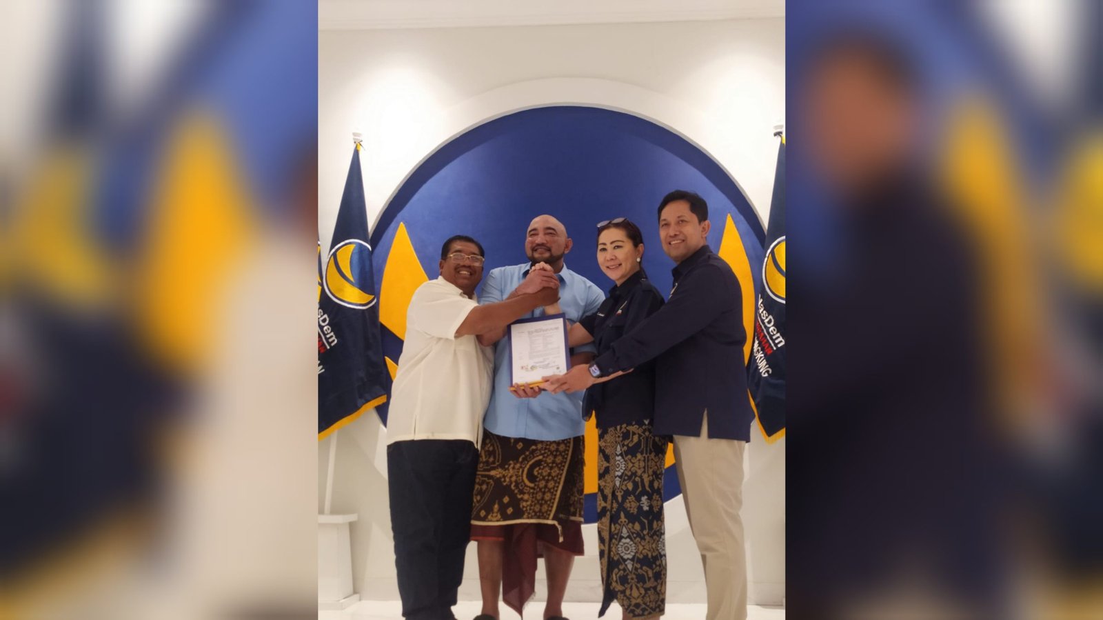 Ket foto: Ketua DPW Nasdem saat memberikan rekomendasi kepada Paket Mulia – Pas di Kantor DPW Nasdem Bali, Rabu, (28/8/2024). (Sumber: barometerbali/rian)