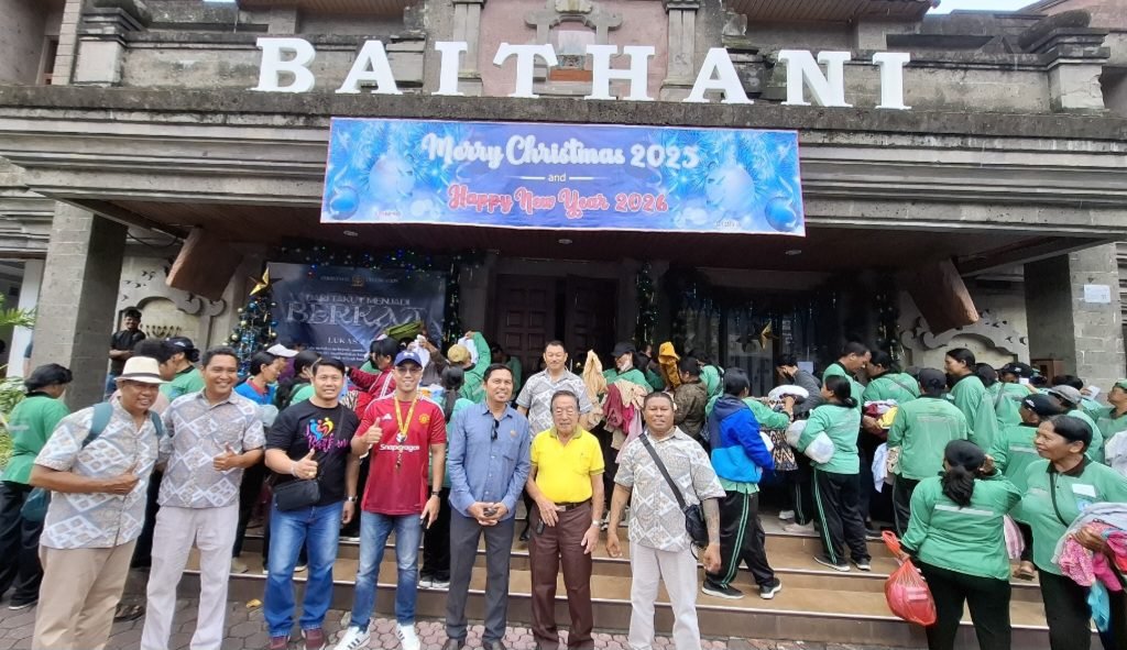 Barometer Bali | Denpasar — Semangat Natal 2025 dimaknai Gereja GPT Baithani Denpasar melalui aksi sosial Diakonia dengan menyalurkan bantuan kepada petugas keamanan di sekitar gereja serta 100 petugas kebersihan Kota Denpasar, Rabu (24/12/2025).