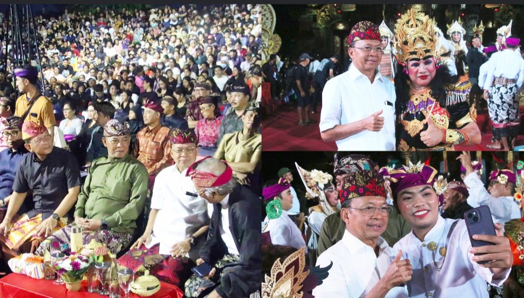 Di tengah dentingan gamelan yang menggema, hadir Gubernur Bali, Wayan Koster, yang tampak duduk khusyuk menyaksikan pertunjukan hingga akhir acara. Ia tak sendiri. Tampak pula mendampingi sejumlah tokoh penting, seperti Bupati Badung Wayan Adi Arnawa, Bupati Buleleng Nyoman Sutjidra, Ketua DPRD Gianyar Ketut Sudarsana, serta Danrem 163/Wirasatya Brigjen TNI Ida I Dewa Agung Hadisaputra.