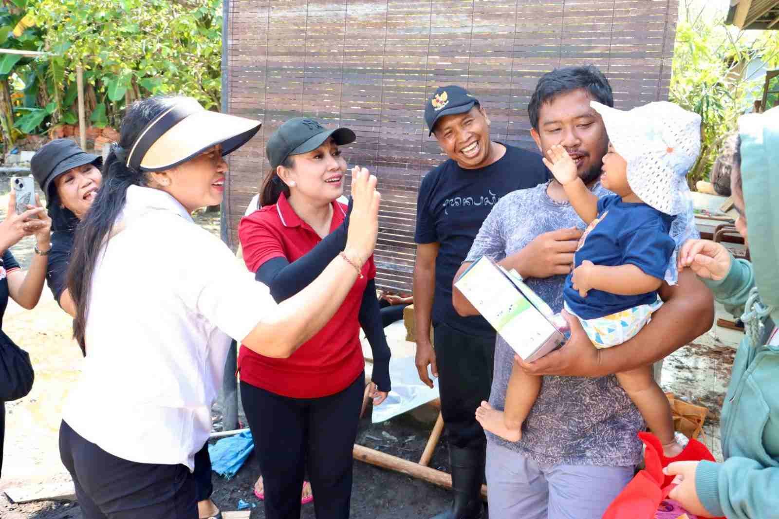 Barometer Bali | Denpasar – Ketua TP PKK Kota Denpasar, Ny. Sagung Antari Jaya Negara bersama Ketua GOW Kota Denpasar, Ny. Ayu Kristi Arya Wibawa mendatangi langsung 50 kediaman warga terdampak banjir untuk memberikan bantuan, di 7 Banjar di Wilayah Kelurahan Peguyangan, pada Jumat (19/9/2025). Dimana, penyaluran bantuan bagi warga terdampak banjir kali ini ditujukan untuk meringankan beban warga terdampak bencana banjir di wilayah Kelurahan Peguyangan dengan memprioritaskan pembagian bantuan kepada ibu, bayi, balita dan anak-anak serta lansia.