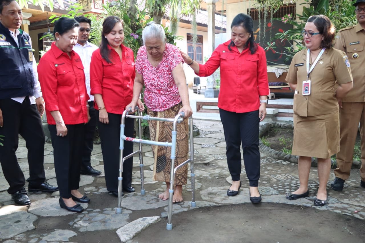 Dalam kegiatan ini, Ny. Sagung Antari Jaya Negara beserta pengurus mendatangi langsung kediaman para lansia. Bertatap muka, bercengkrama dan berbagi kasih, serta menyerahankan alkes seperti tongkat tripod, dan walker.