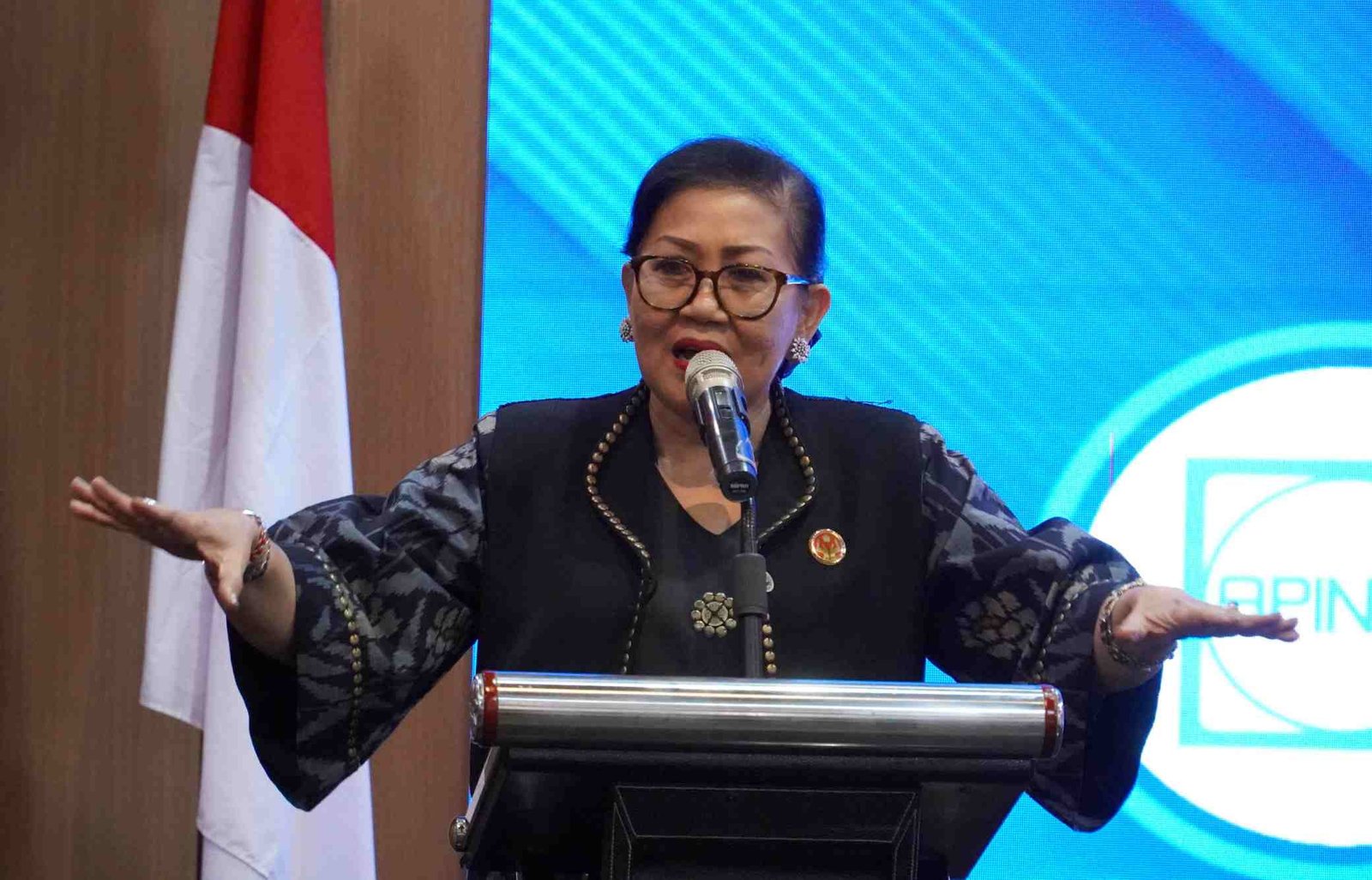 Foto: Ketua Dewan Kerajinan Nasional Daerah (Dekranasda) Provinsi Bali, Ny. Putri Koster, saat didaulat sebagai pembicara dalam Talkshow Apindo Bali 2025 yang diselenggarakan oleh DPP Apindo Bali di Quest Hotel, Denpasar, pada Anggara Umanis-Kuningan, Selasa (29/4). (Barometerbali/rah)