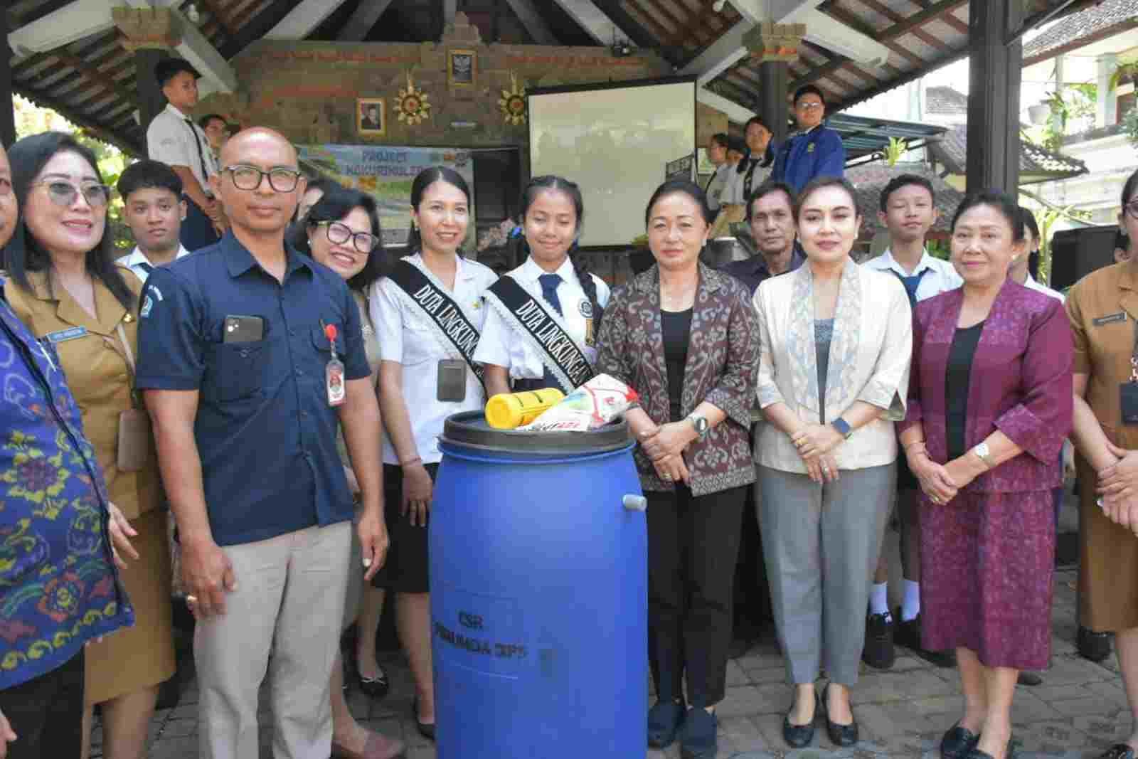 Tampak mendampingi dalam kesempatan tersebut, Ketua GOW Kota Denpasar yang juga Sekretaris I TP. PKK Kota Denpasar, Ny. Ayu Kristi Arya Wibawa, Ketua DWP Kota Denapsar, Ny. Widnyani Wiradana, Kadisdikpora Kota Denpasar, AA Gede Wiratama, Kepala Bidang Pengelolaan Sampah dan Limbah B3 di Dinas Lingkungan Hidup dan Kebersihan (DLHK) Kota Denpasar, I Ketut Adi Wiguna, Pengurus TP. PKK Kota Denpasar, serta instansi terkait lainya.