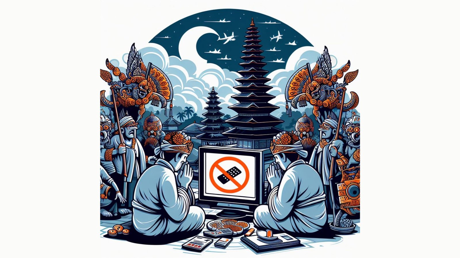 Ilustrasi: Untuk menjaga kekhidmatan dan kenyamanan umat Hindu di Bali saat Hari Raya Nyepi Saka 1946/2024, layanan data seluler, radio, TV, dan IPTV dimatikan.(Sumber: BB/AI/bing)