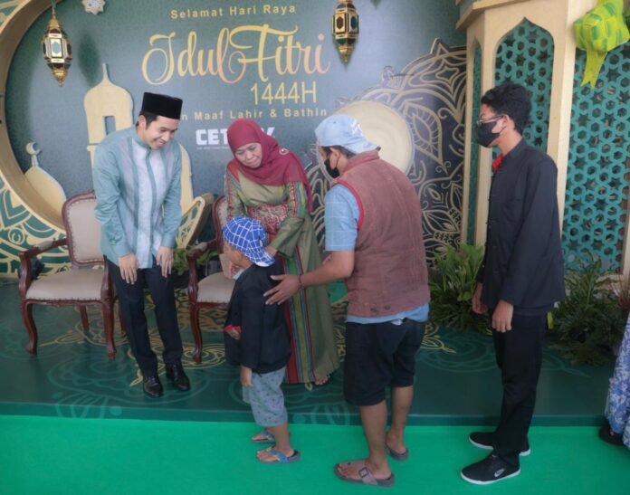 Gubernur Khofifah menggelar open house untuk Forkopimda, Kepala OPD, dan masyarakat umum di Gedung Negara Grahadi, Sabtu (22/4/2023). (Foto: BB/Redho)