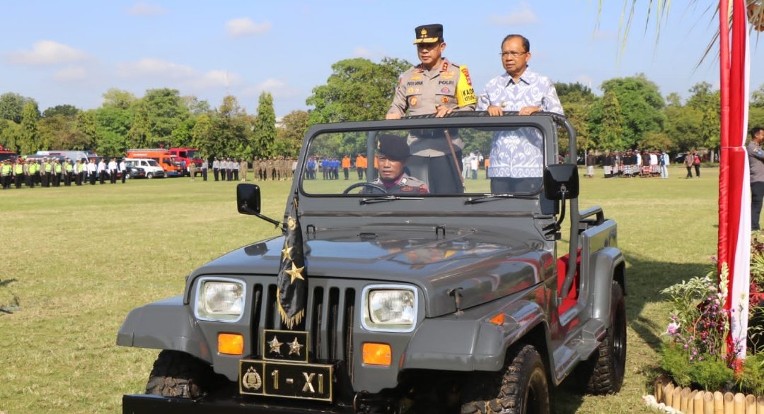 Bertindak selaku pimpinan apel, Kapolda Bali, Irjen Pol Putu Jayan Danu Putra didampingi Gubernur Bali, Wayan Koster menyampaikan amanat Kapolri, Jenderal Polisi Listyo Sigit Prabowo bahwa Polri bersama stakeholder terkait berkomitmen untuk mengoptimalkan pengamanan melalui Operasi Terpusat dengan sandi “Ketupat 2023” selama 14 hari.