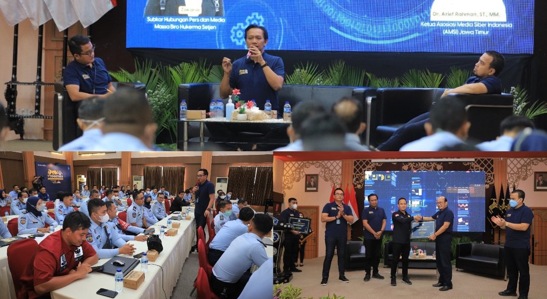 Kegiatan yang diselenggarakan di Aula Raden Wijaya Kanwil Kemenkumham Jatim itu diikuti seluruh tim humas dari satker jajaran. Baik lapas, rutan, rupbasan, keimigrasian, bapas dan balai harta peninggalan secara langsung maupun daring.