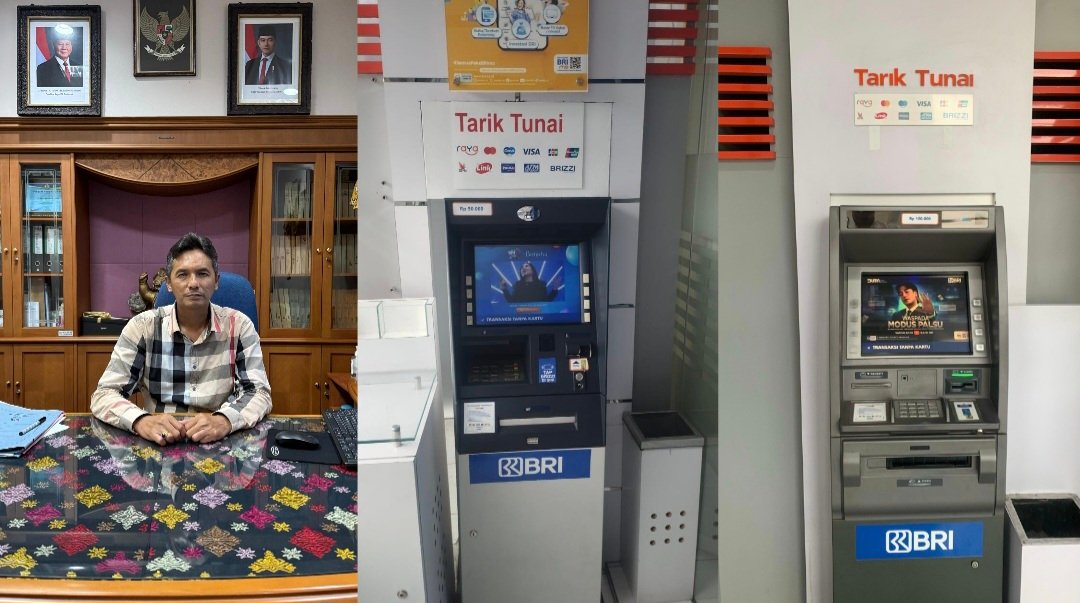 Kolase foto: Pemimpin Kantor Cabang BRI Negara Dewa Gede Darmayasa dan layanan CRM/ATM BRI Unit Ngurah Rai, Negara Jembrana sudah kembali berjalan normal (sumber: barometerbali/dika)