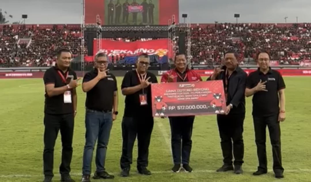 Barometer Bali | Gianyar – Penyerahan Dana Gotong Royong PDI Perjuangan sebesar Rp 517 juta oleh Kepała Pusat Analisa dan Pengendali Situasi PDI Perjuangan Prananda Prabowo didampingi Sekjen PDIP Hasto Kristiyanto kepada Ketua DPD PDIP Sumatera Barat, Sumatera Utara dan Aceh di Stadion Dipta Gianyar Bali, Sabtu 13 Desember 2025.