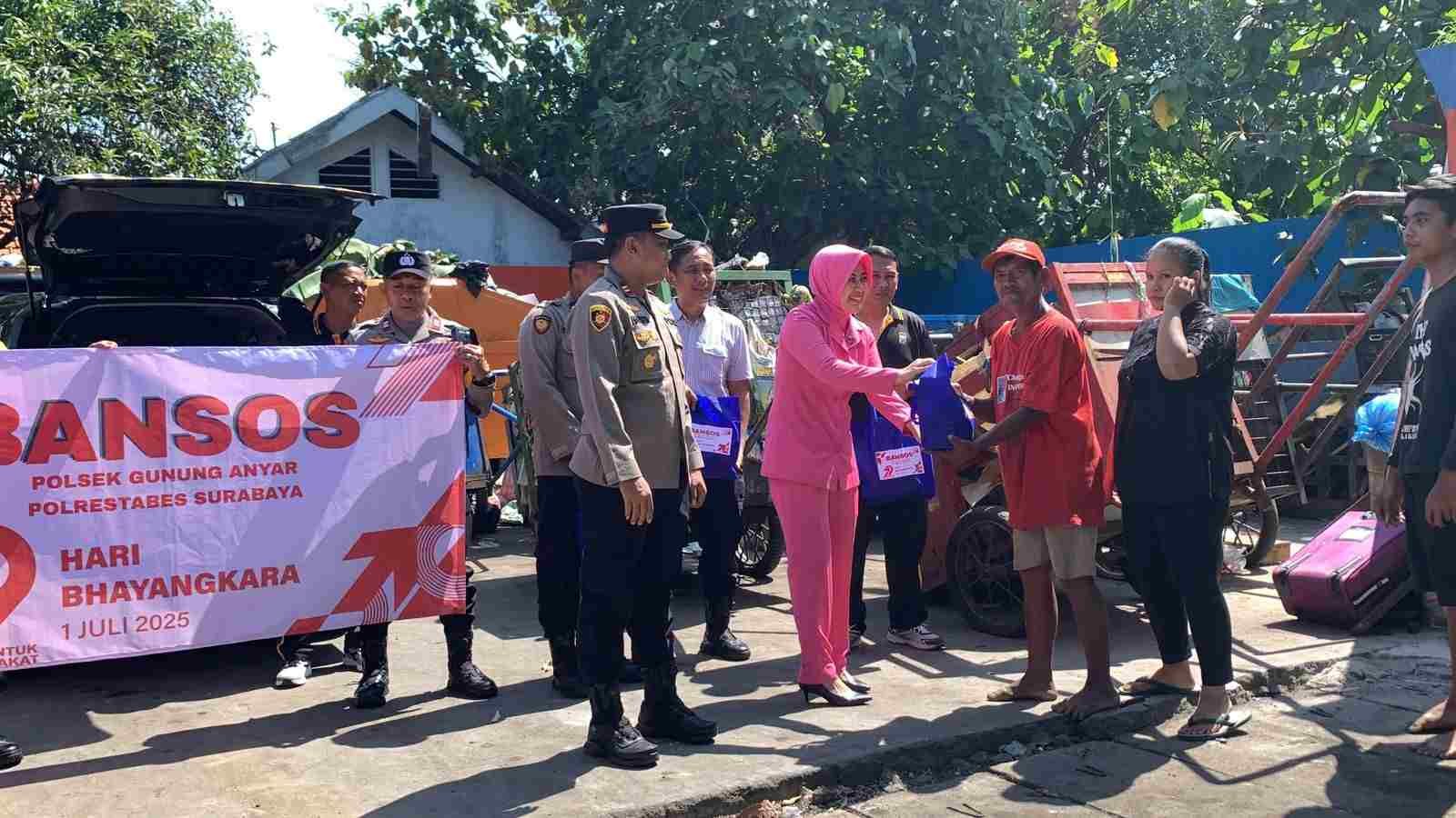 Barometer Bali | Surabaya – Dalam rangka menyambut Hari Bhayangkara ke-79 yang diperingati setiap 1 Juli, Polsek Gunung Anyar menggelar kegiatan penyaluran bantuan sosial kepada masyarakat yang membutuhkan di wilayah Kecamatan Gunung Anyar Kota Surabaya.