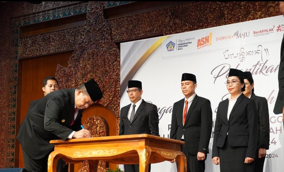 Foto: Pj. Gubernur Bali SM Mahendra Jaya melantik 4 Pejabat Pimpinan Tinggi Pratama Lingkungan Pemerintah Provinsi Bali, Kamis (22/2/2024). (Sumber: BB/hmsprovbali)