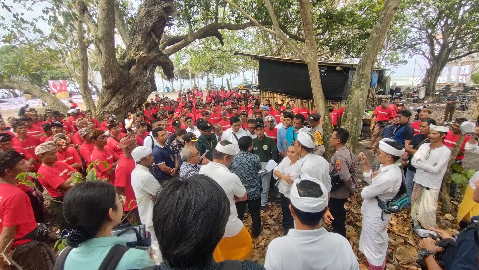 Foto: Suasana proses agenda sidang Pemeriksaan Setempat oleh PN Tabanan sempat berlangsung tegang terkait penentuan batas tanah sengketa Pelaba Pura Dalem Desa Adat Kelecung, Jumat (3/11/2023). (Sumber: BB/Ngurah Dibia)
