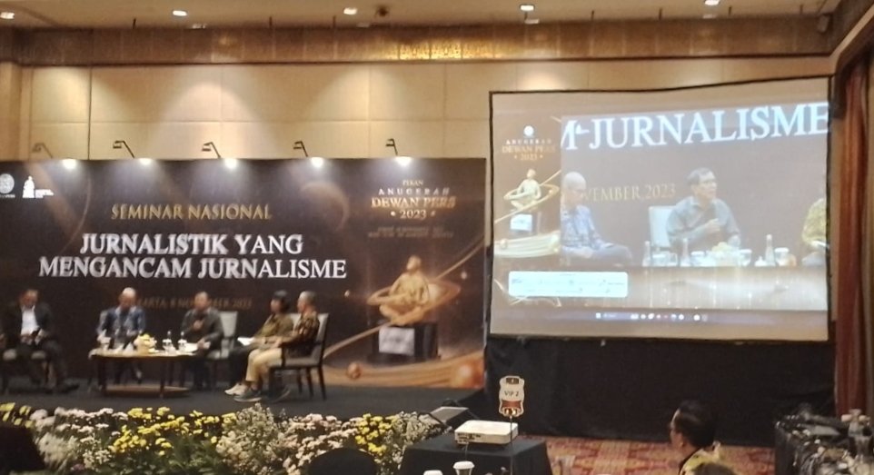 Foto: Seminar nasional “Jurnalistik yang Mengancam Jurnalisme”, dibuka Menteri Kominfo Budi Arie Setiadi di Jakarta, Rabu (8/11/2023). (Sumber: PWI)