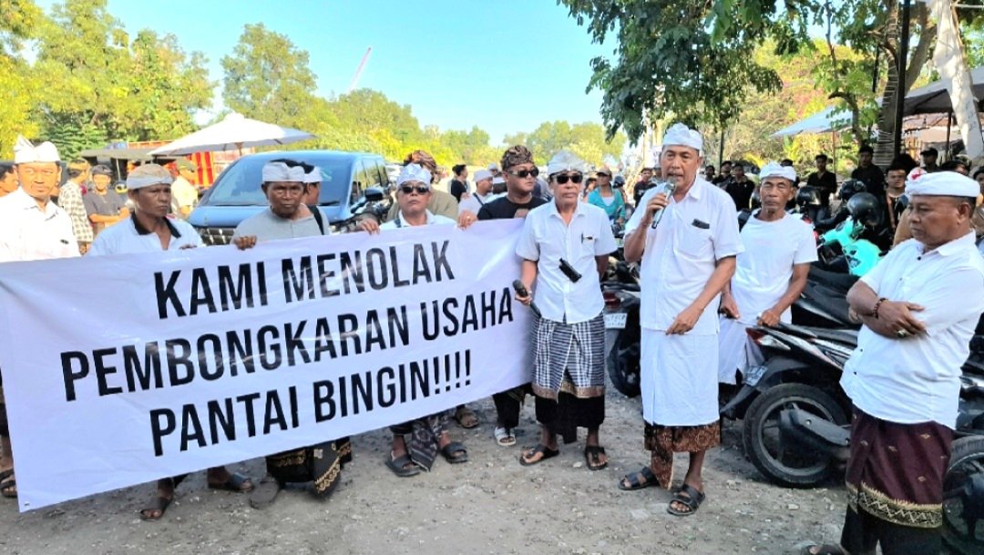 Barometer Bali | Badung — Suara ombak di Pantai Bingin, Desa Pecatu, Kuta Selatan, hari itu tak bisa menenangkan hati para warga. Puluhan pedagang lokal dan pemilik vila memilih berdiri di garis depan, pada Senin (21/7/2025), bukan untuk mencari tamu, tapi menyuarakan harapan agar usaha mereka tidak digusur begitu saja.